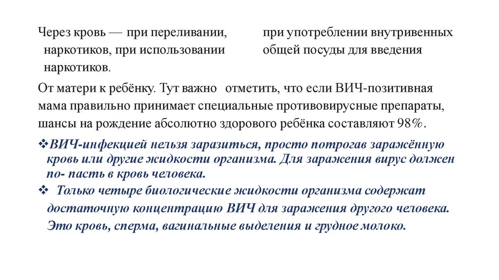 От матери к ребёнку. Тут важно отметить, что если ВИЧ-позитивная