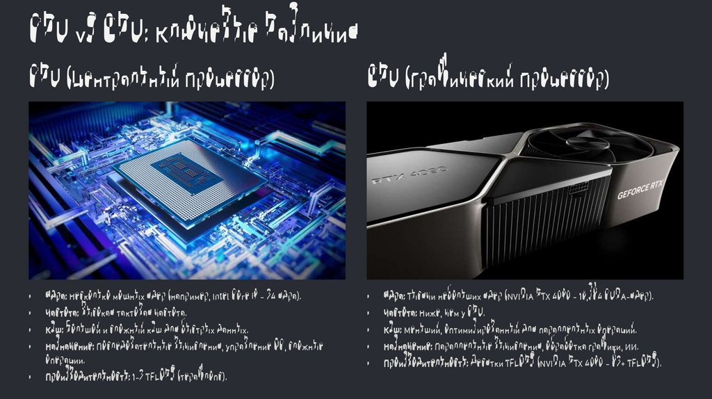CPU vs GPU: Ключевые РазличияCPU (Центральный Процессор)