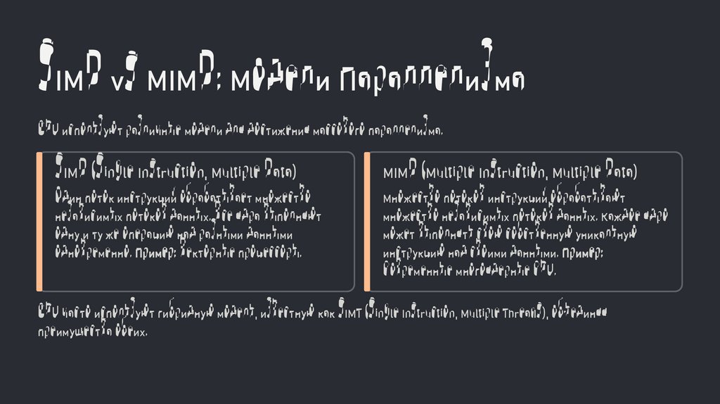 SIMD vs MIMD: Модели ПараллелизмаGPU используют различные модели для достижения массового параллелизма.