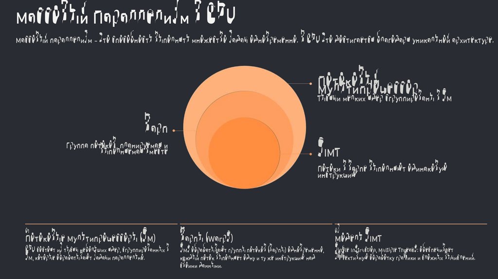 Массовый Параллелизм в GPUМассовый параллелизм - это способность выполнять множество задач одновременно. В GPU это достигается благодаря уникальной архитектуре.