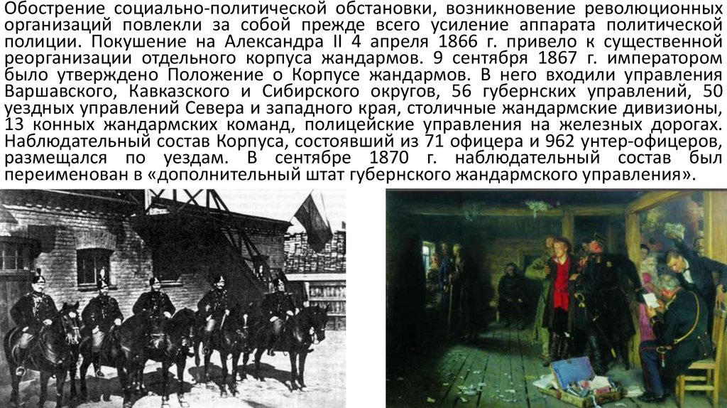 спокойствия». В ведение жандармерии переходит следствие по политическим