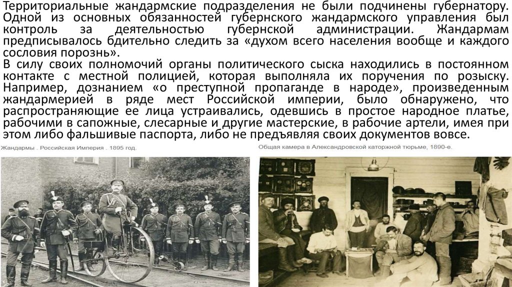 жандармерией в ряде мест Российской империи, было обнаружено, что