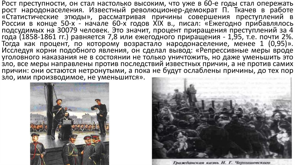 Рост преступности, он стал настолько высоким, что уже в 60-е годы стал опережатьрост народонаселения. Известный революционер-демократ П. Ткачев в работе