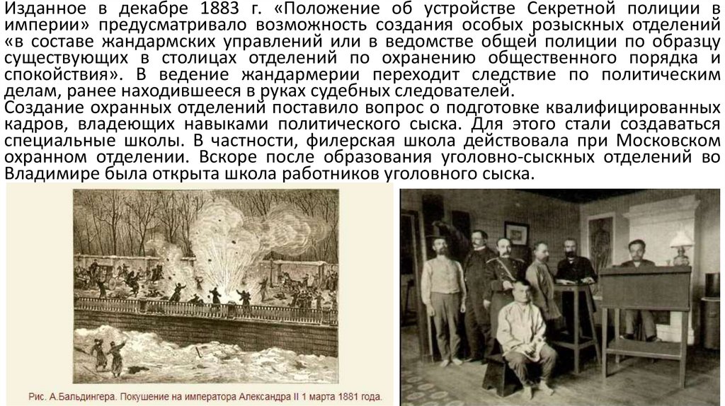 Изданное в декабре 1883 г. «Положение об устройстве Секретной полиции вимперии» предусматривало возможность создания особых розыскных отделений