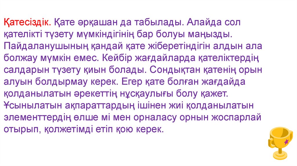 Қатесіздік. Қате әрқашан да табылады. Алайда солқателікті түзету мүмкіндігінің бар болуы маңызды.