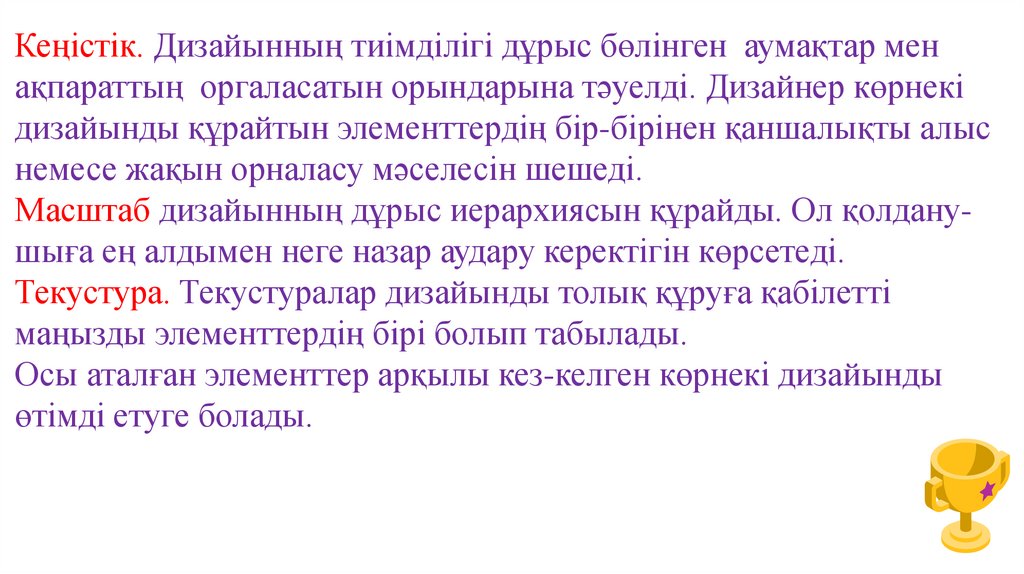 жеңіл болады. Көрнекілік – дизайнның табиғи түсіндірмесі.