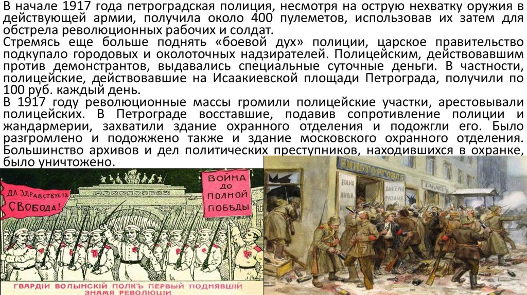 полицейских. В Петрограде восставшие, подавив сопротивление полиции и