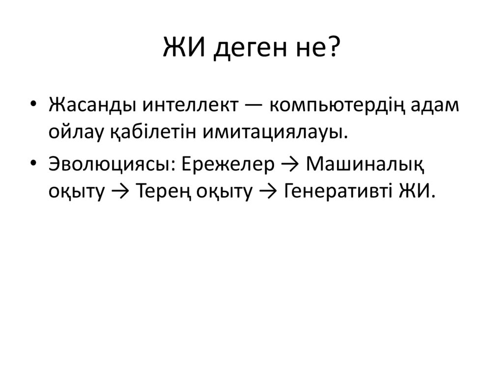 ЖИ деген не?• Жасанды интеллект — компьютердің адам