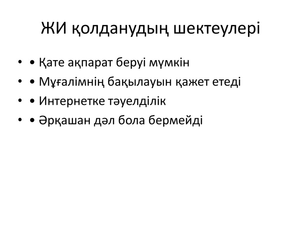ЖИ қолданудың шектеулері• • Қате ақпарат беруі мүмкін