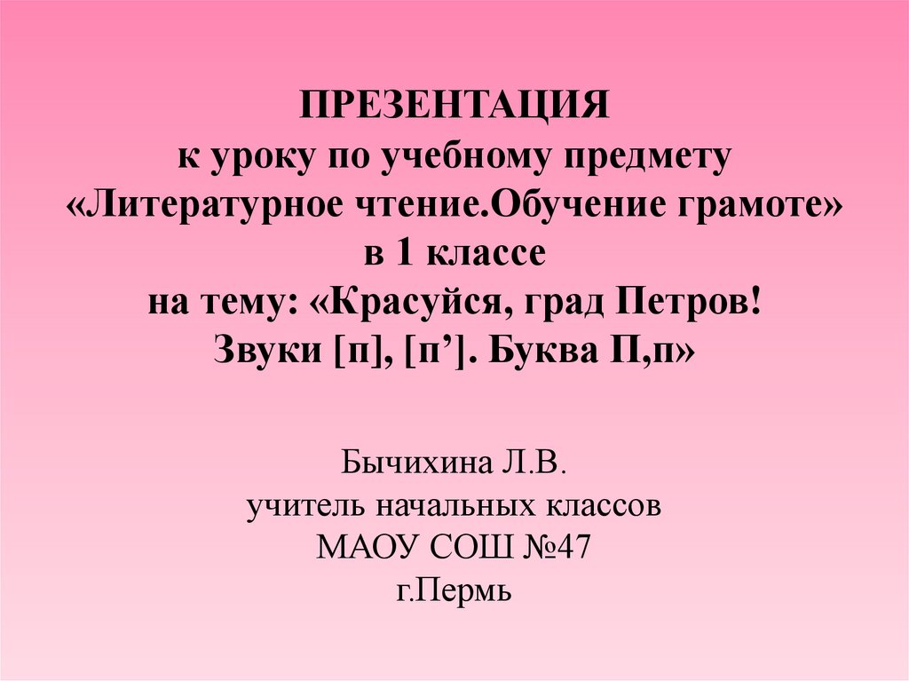 Звуки [п], [п’]. Буква П,п»Бычихина Л.В.