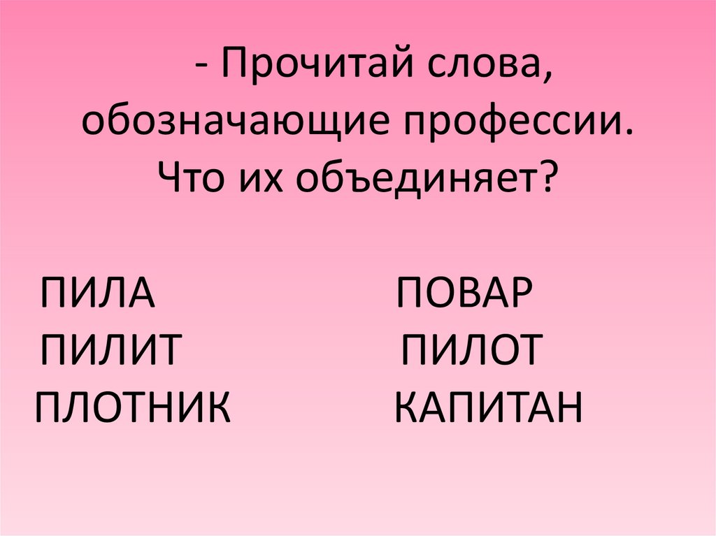 - Прочитай слова,обозначающие профессии.