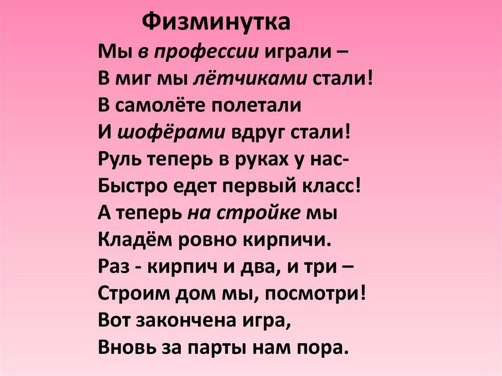 ФизминуткаМы в профессии играли –