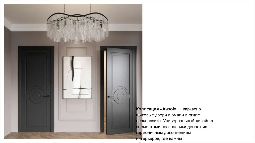 Коллекция «Assol» — каркаснощитовые двери в эмали в стиленеоклассика. Универсальный дизайн с