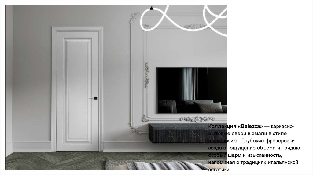 Коллекция «Belezza» — каркаснощитовые двери в эмали в стиленеоклассика. Глубокие фрезеровки