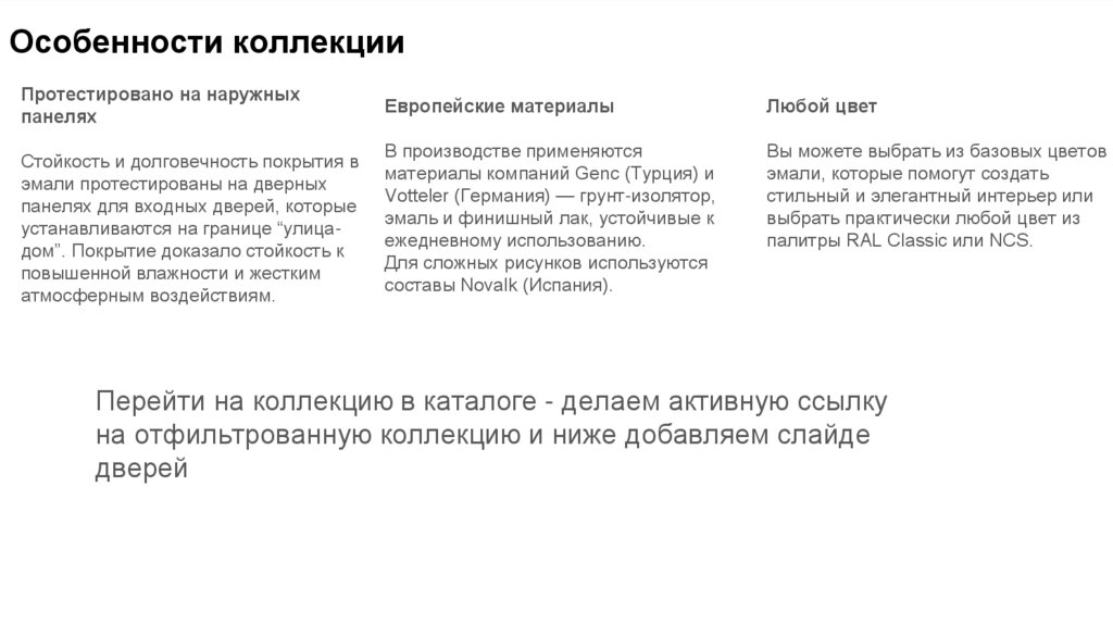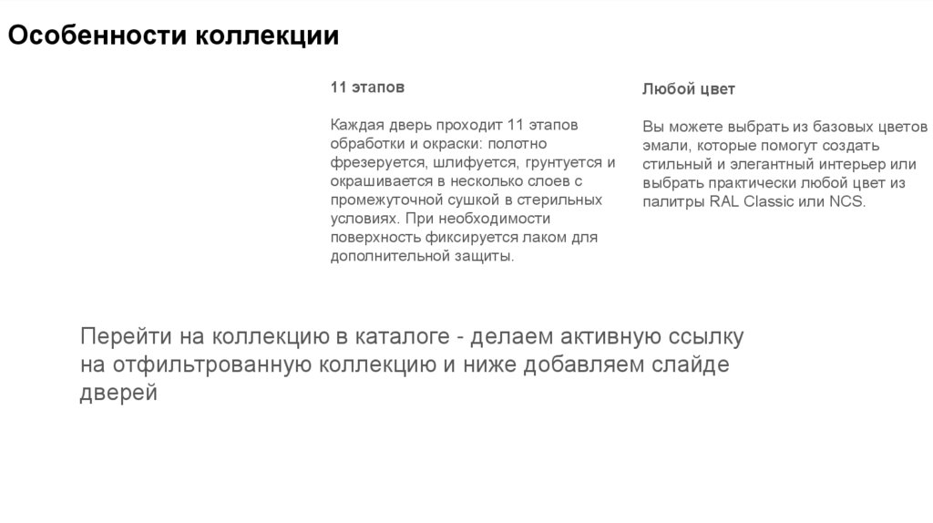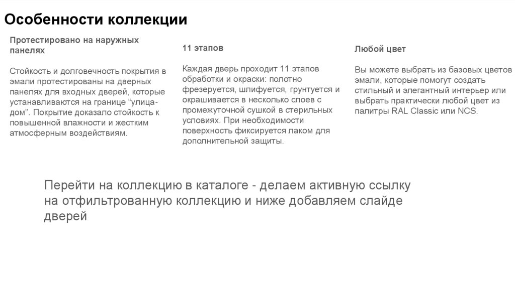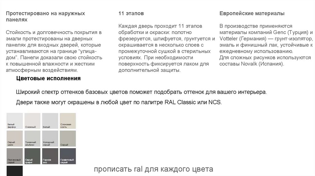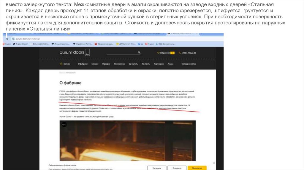 вместо зачеркнутого текста: Межкомнатные двери в эмали окрашиваются на заводе входных дверей «Стальнаялиния». Каждая дверь проходит 11 этапов обработки и окраски: полотно фрезеруется, шлифуется, грунтуется и