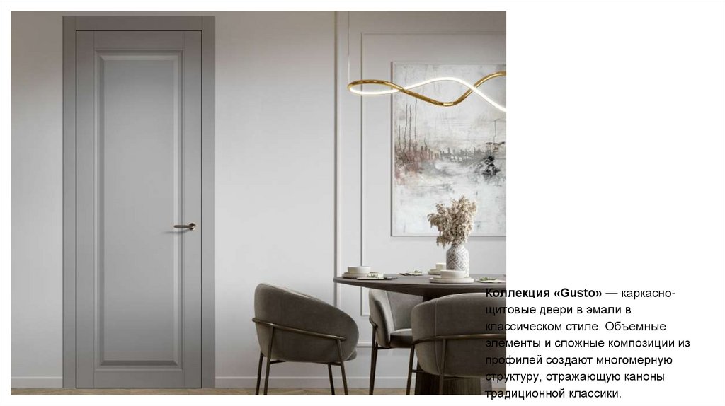 Коллекция «Gusto» — каркаснощитовые двери в эмали вклассическом стиле. Объемные