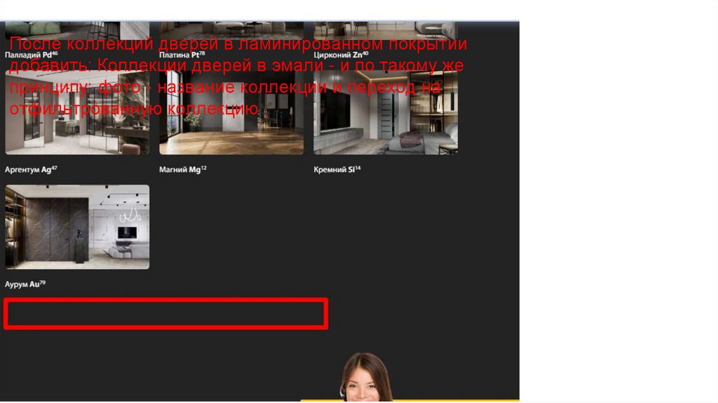 После коллекций дверей в ламинированном покрытиидобавить: Коллекции дверей в эмали - и по такому же