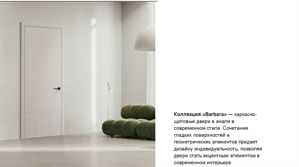 Коллекция «Barbara» — каркаснощитовые двери в эмали всовременном стиле. Сочетание