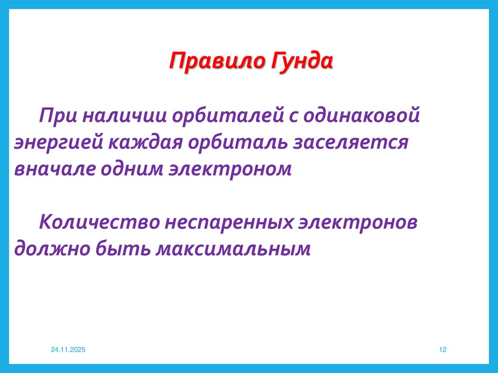 Правило ГундаПри наличии орбиталей с одинаковой