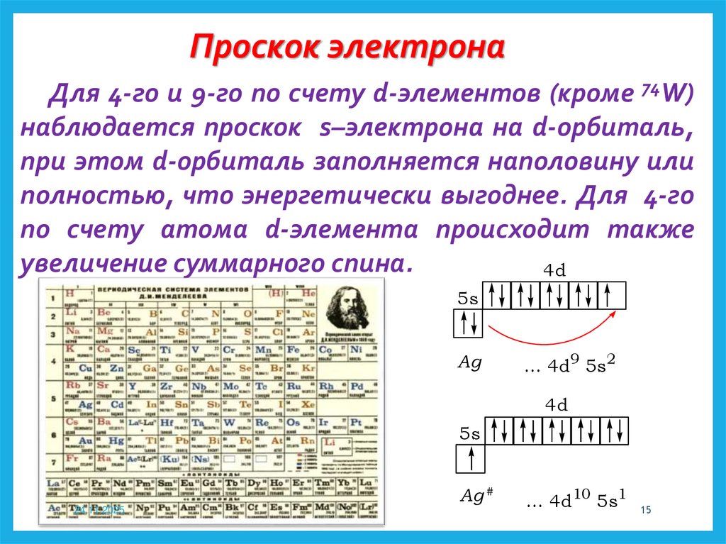 Проскок электронаДля 4-го и 9-го по счету d-элементов (кроме 74W)