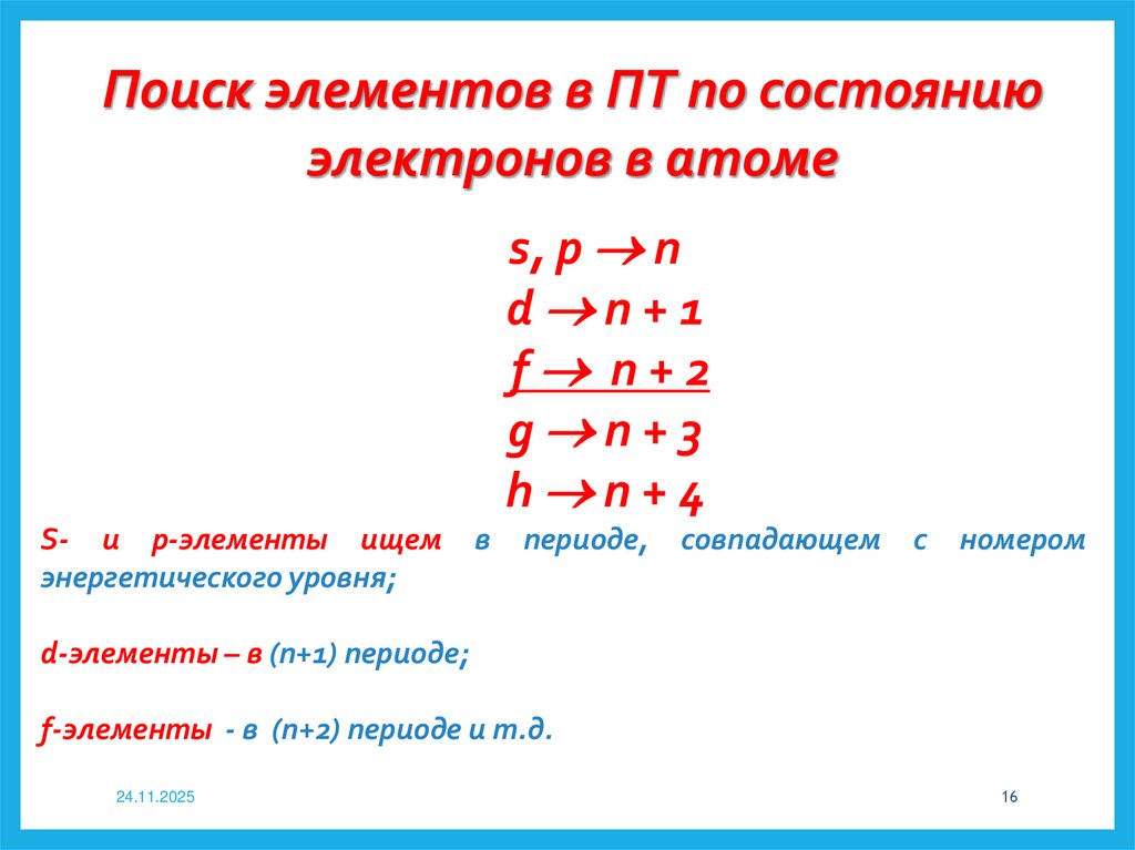 Поиск элементов в ПТ по состояниюэлектронов в атоме