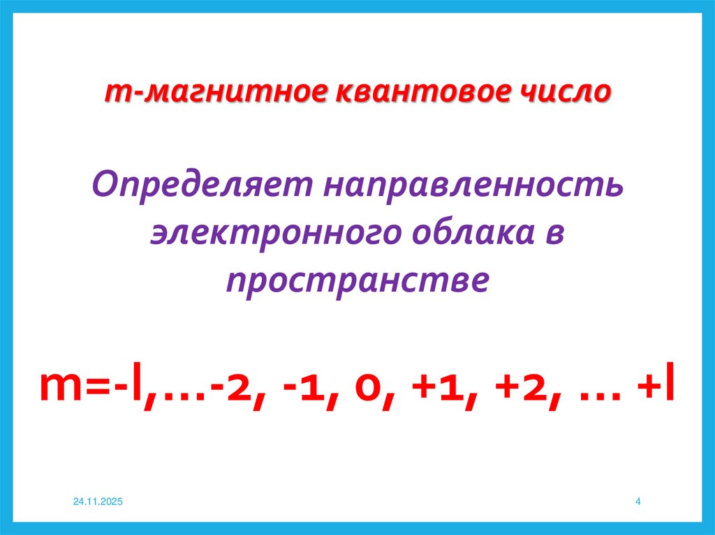 m-магнитное квантовое числоОпределяет направленность
