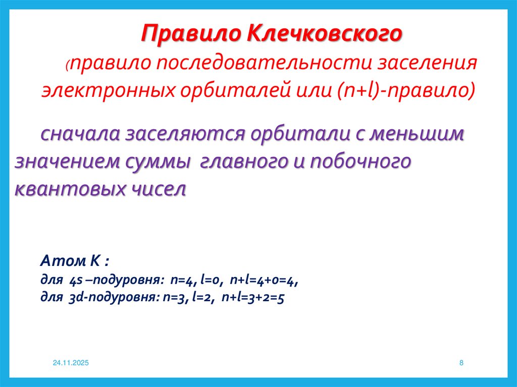 Правило Клечковского(правило последовательности заселения