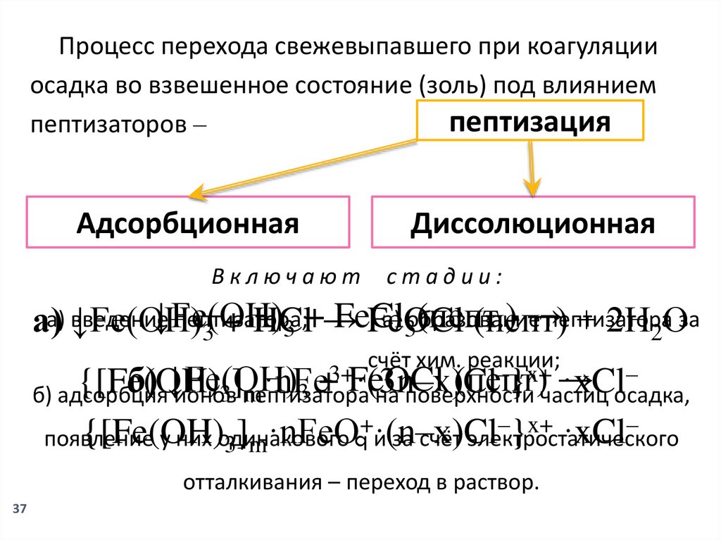 Процесс перехода свежевыпавшего при коагуляцииосадка во взвешенное состояние (золь) под влиянием