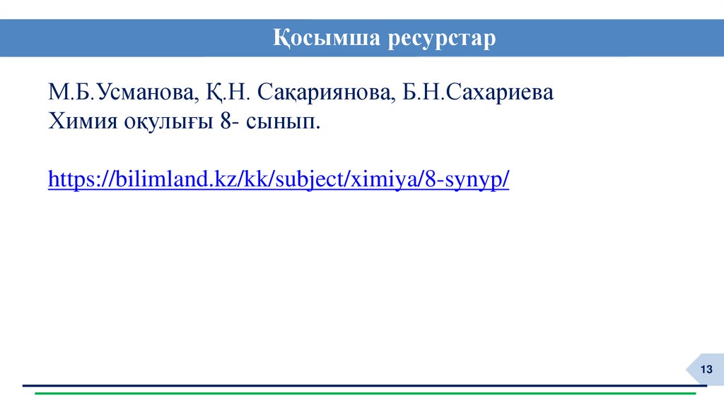 Қосымша ресурстарМ.Б.Усманова, Қ.Н. Сақариянова, Б.Н.Сахариева