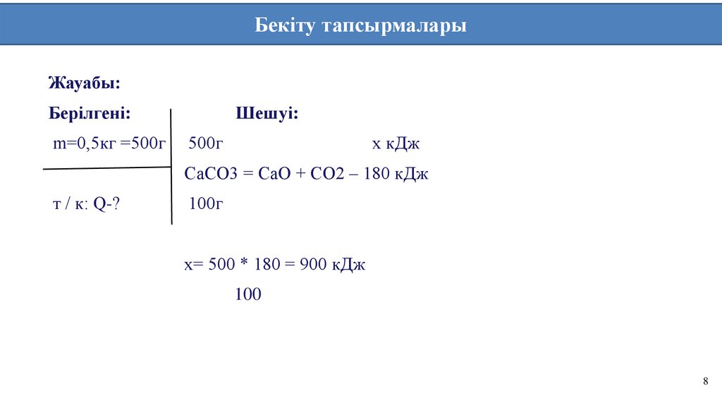 термохимиялық теңдеулер бойынша есептер шығару әдістерін