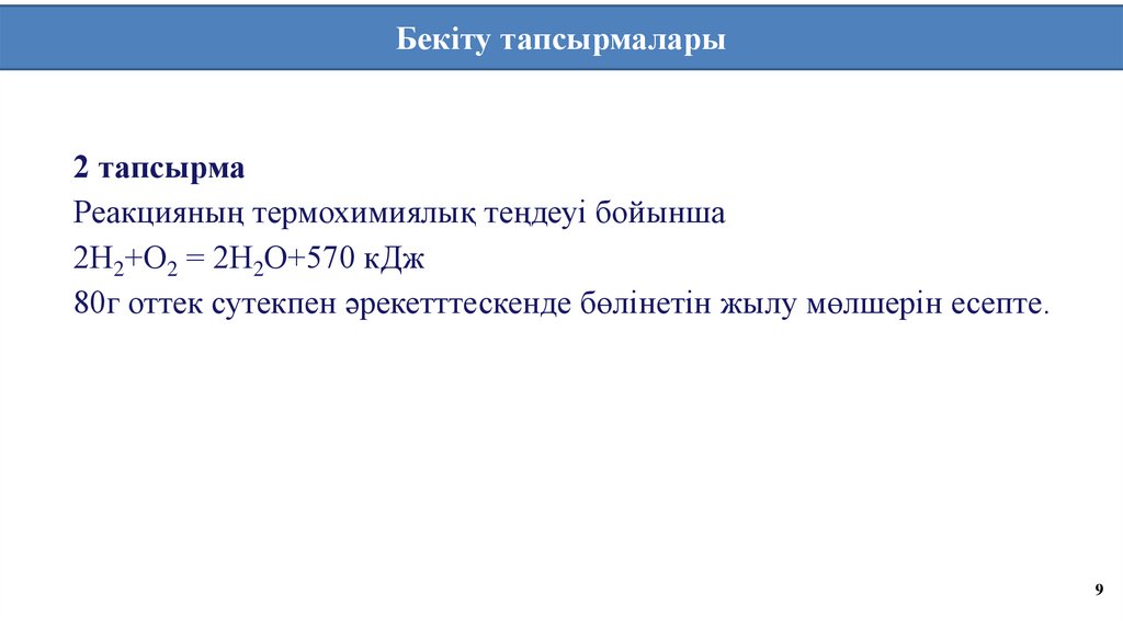 Оқу тапсырмасыТермохимиялық теңдеу деген не?