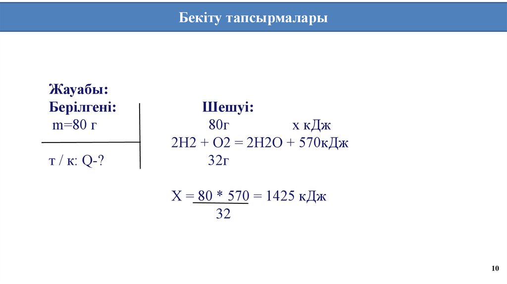 80г оттек сутекпен әрекетттескенде бөлінетін жылу мөлшерін есепте.