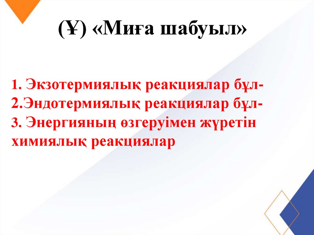 (Ұ) «Миға шабуыл»1. Экзотермиялық реакциялар бұл-