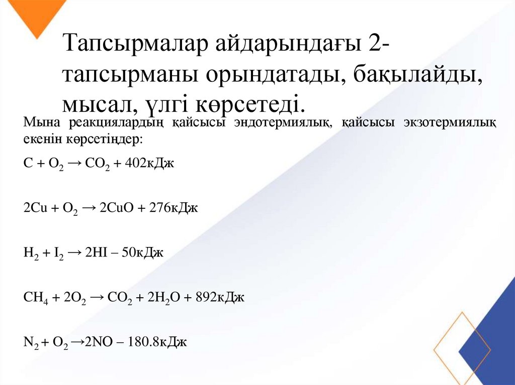 2.Эндотермиялық реакциялар бұл3. Энергияның өзгеруімен жүретін