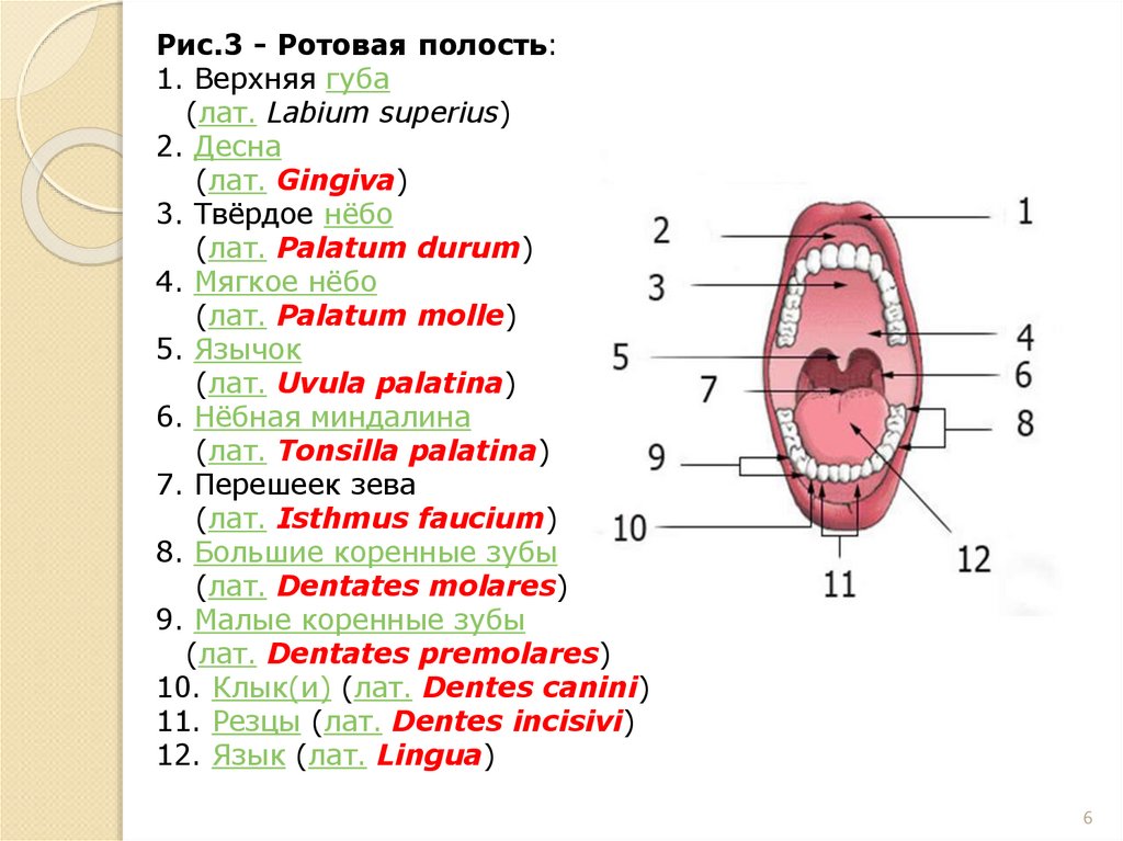 Рис.3 - Ротовая полость:1. Верхняя губа