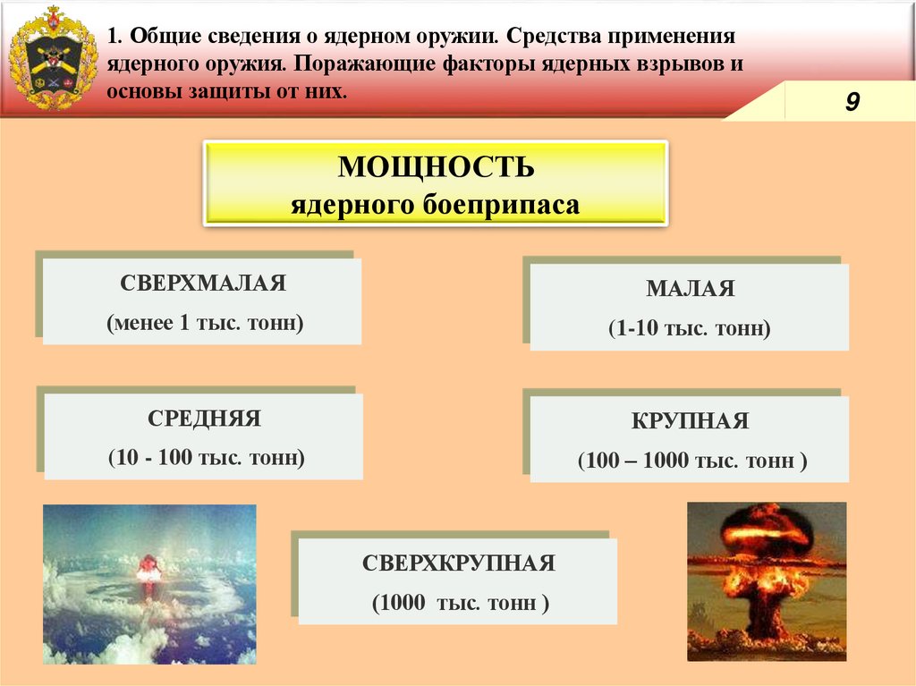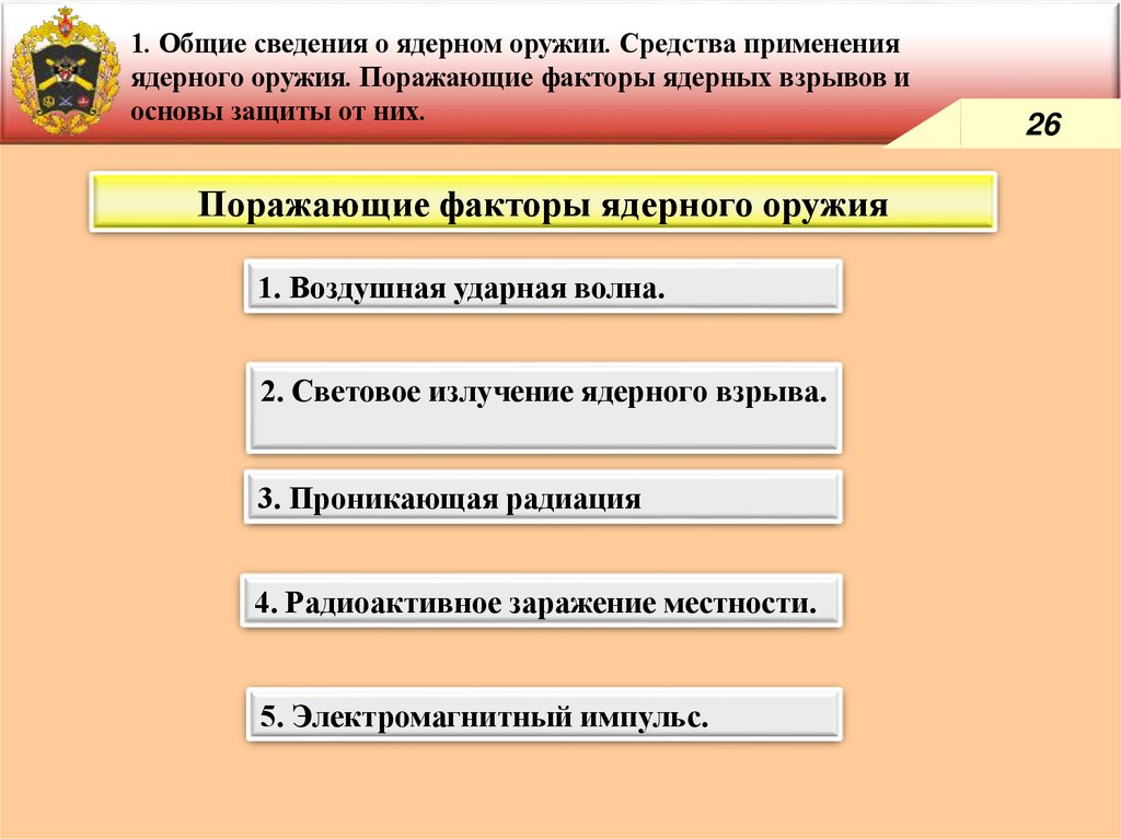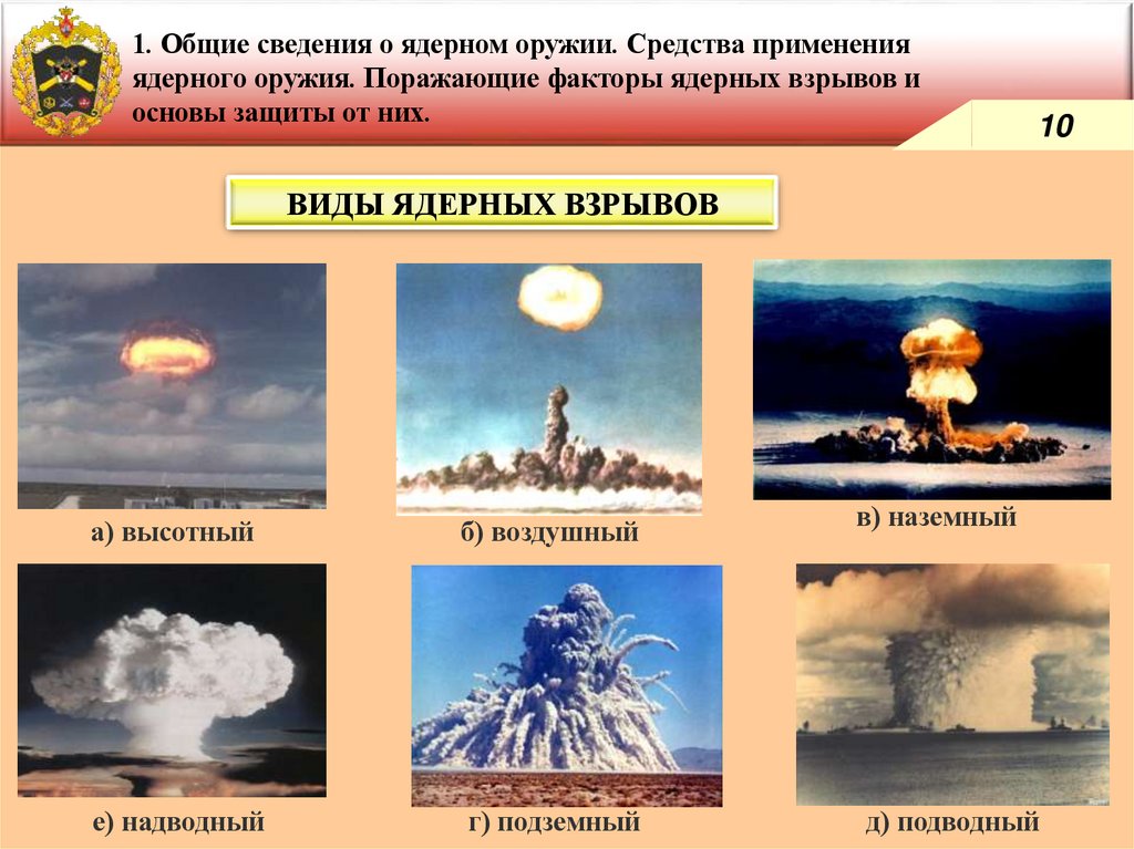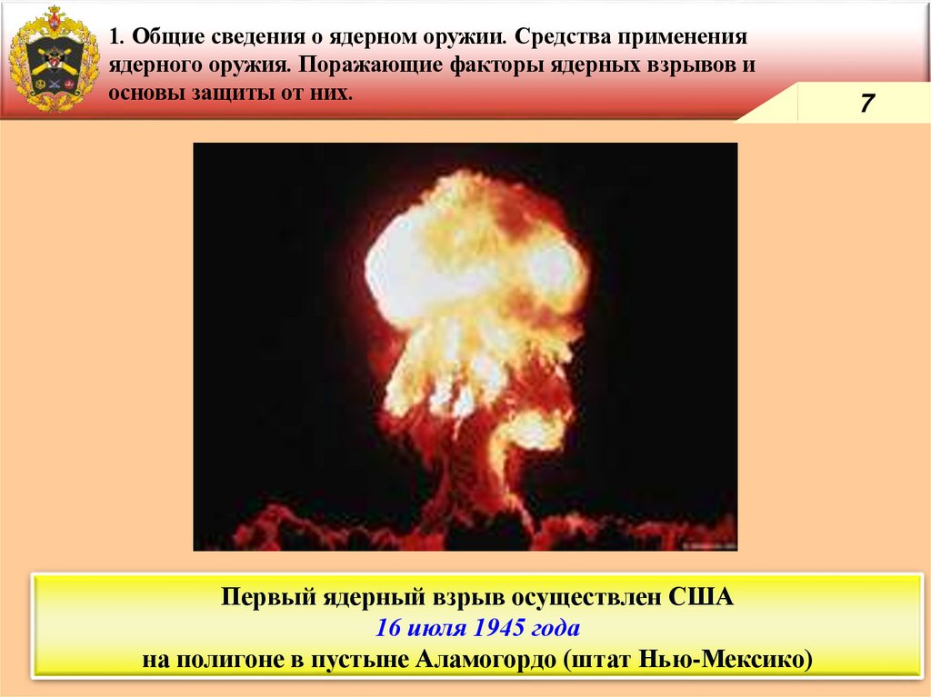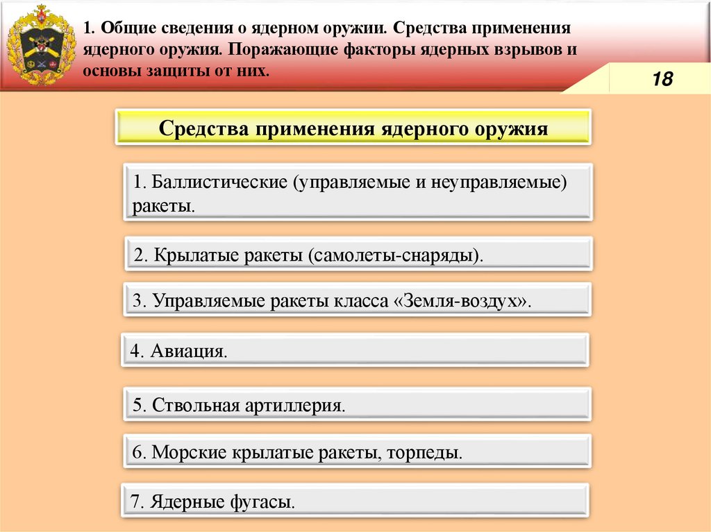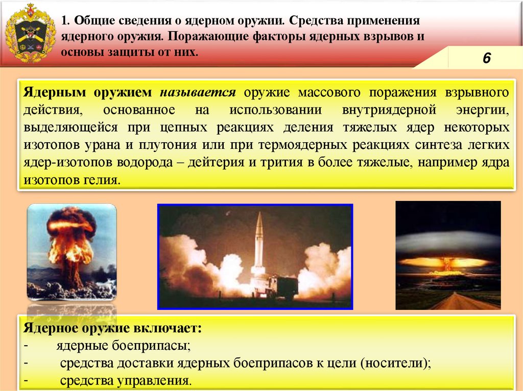 1. Общие сведения о ядерном оружии. Средства примененияядерного оружия. Поражающие факторы ядерных взрывов и