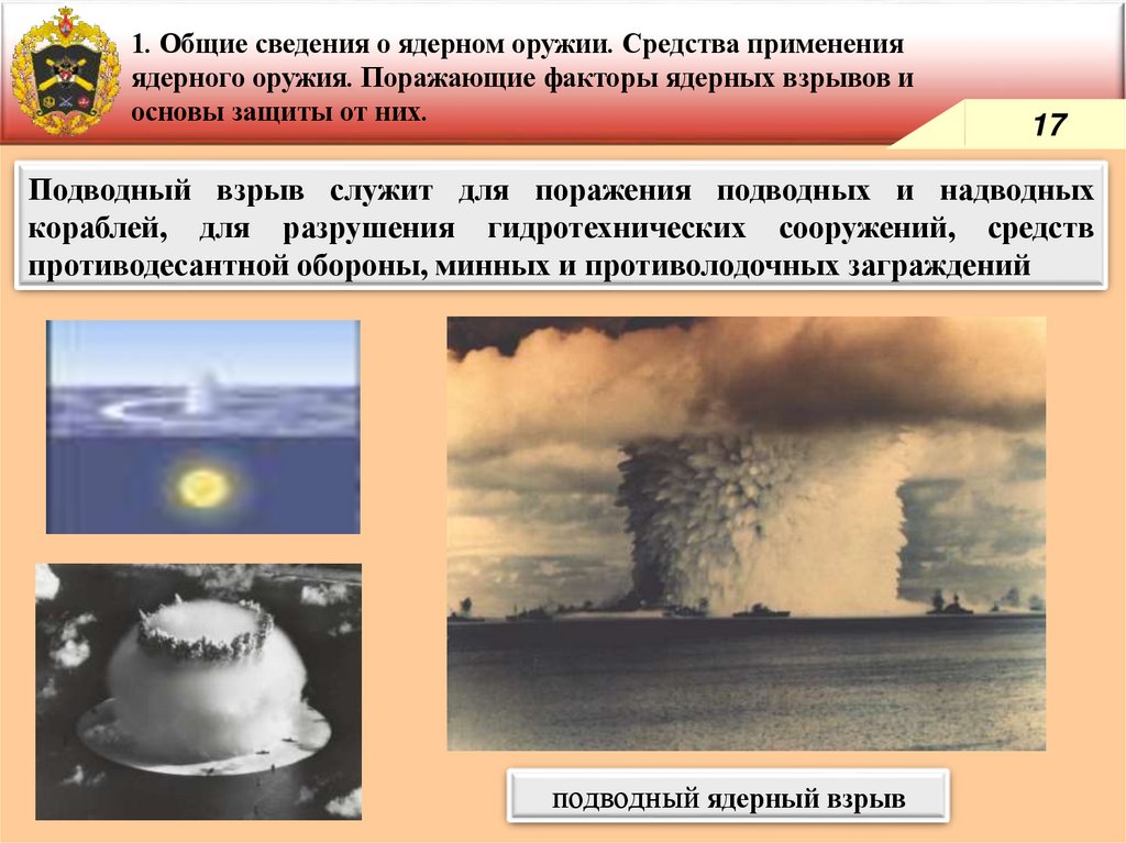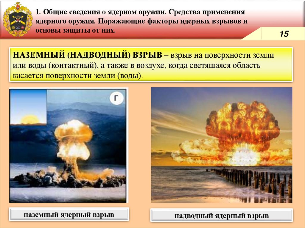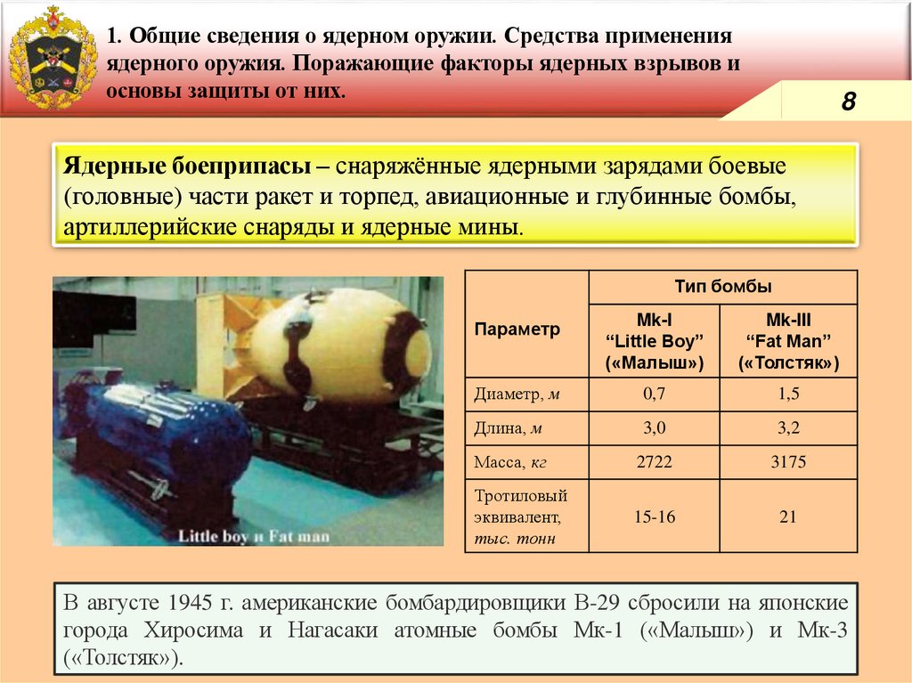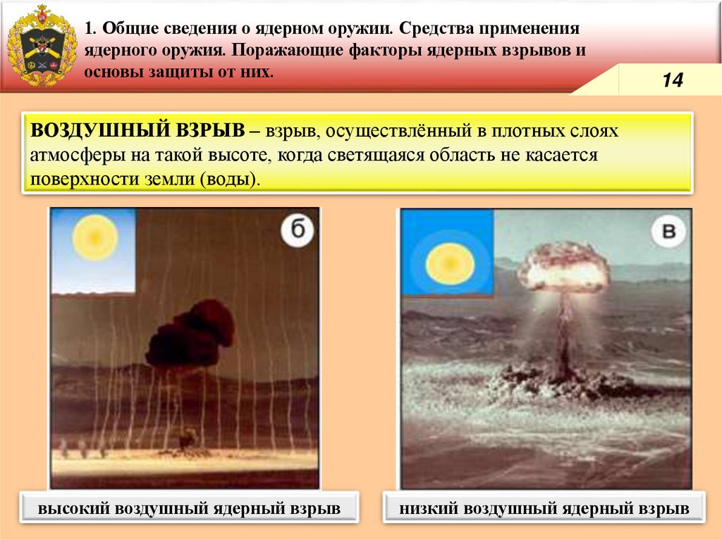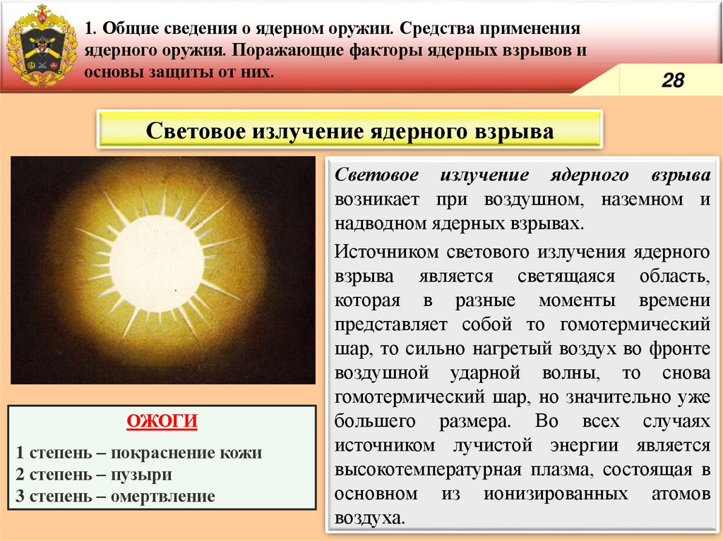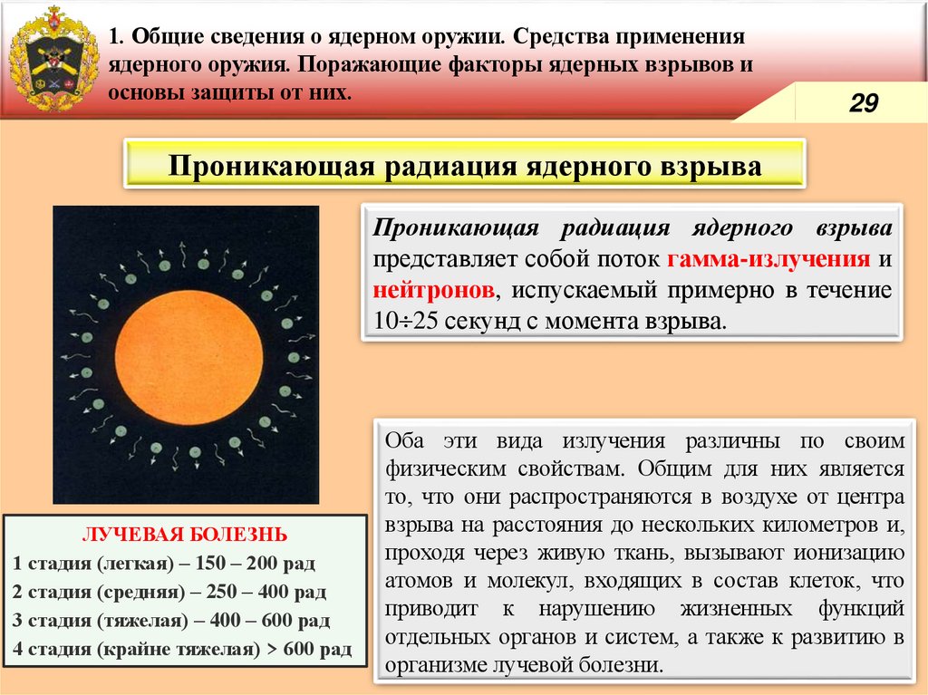 1. Общие сведения о ядерном оружии. Средства примененияядерного оружия. Поражающие факторы ядерных взрывов и