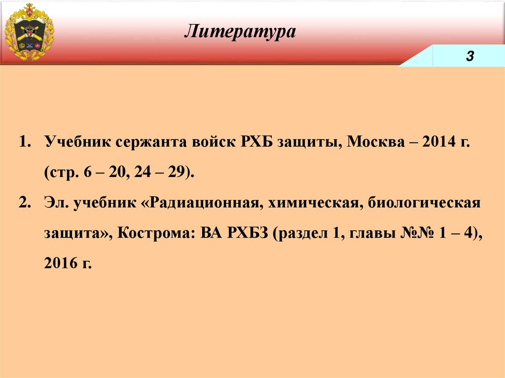 1. Учебник сержанта войск РХБ защиты, Москва – 2014 г.