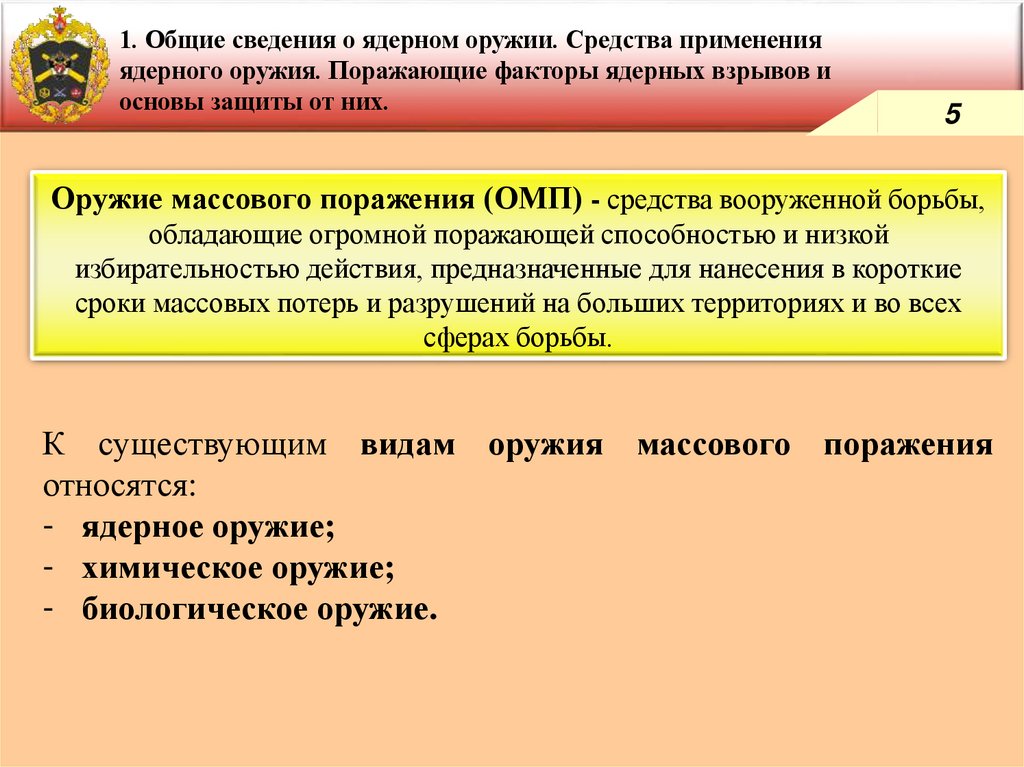 Оружие массового поражения (ОМП) - средства вооруженной борьбы,