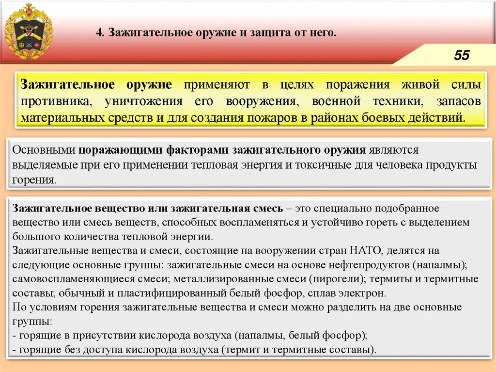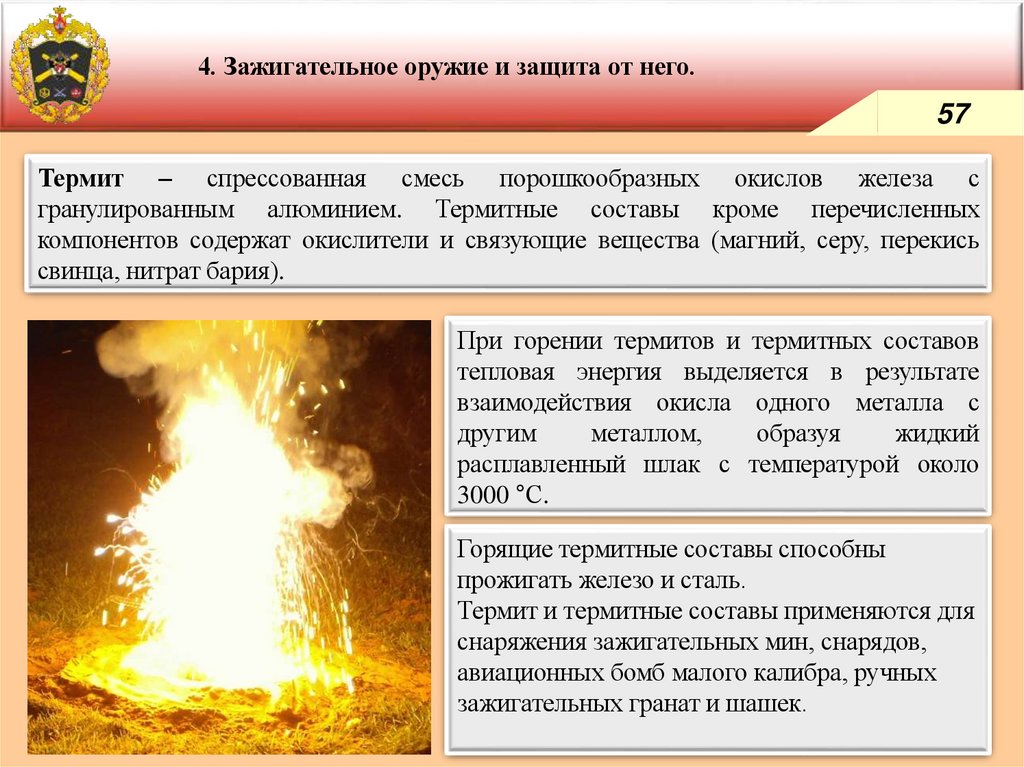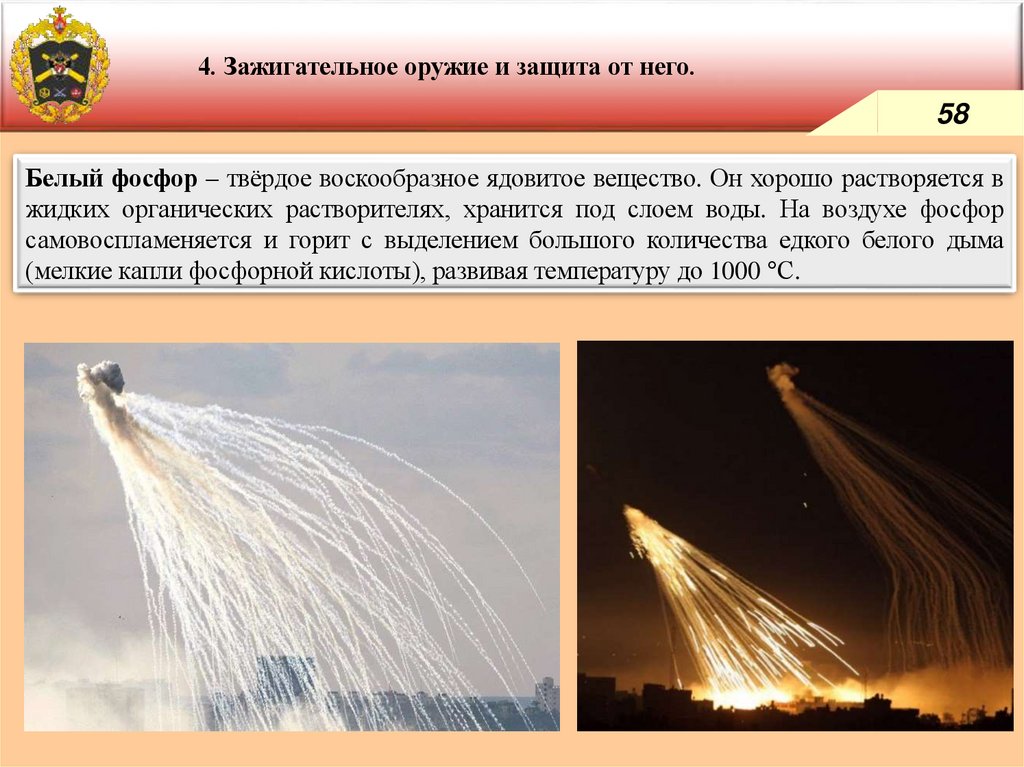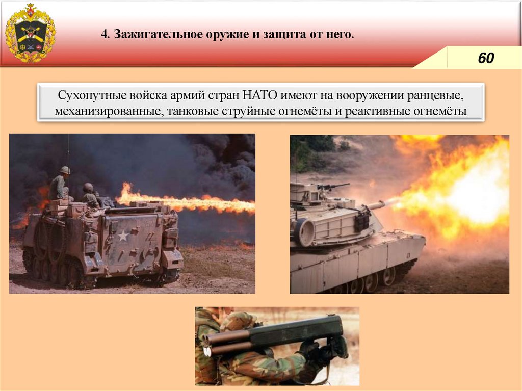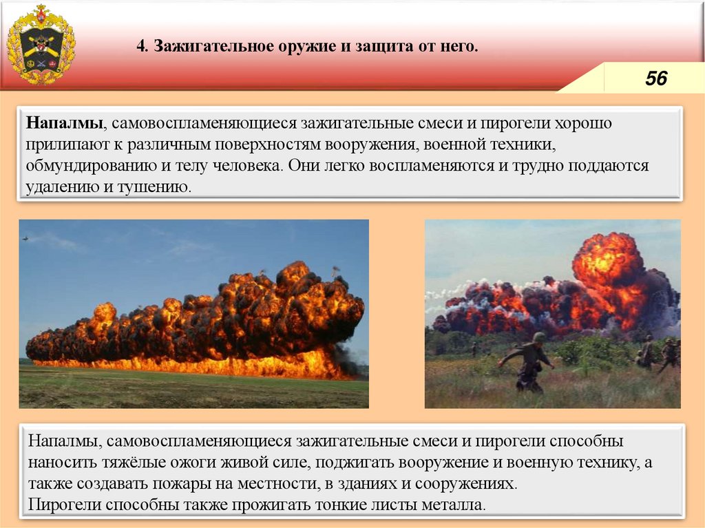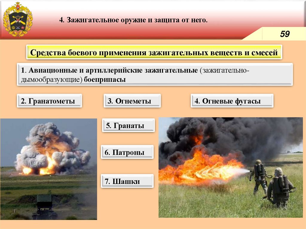 наносить тяжёлые ожоги живой силе, поджигать вооружение и военную технику, а