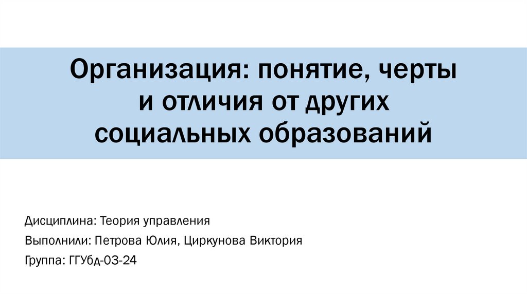 Дисциплина: Теория управленияВыполнили: Петрова Юлия, Циркунова Виктория