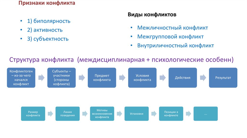 • Конфликт — это возникновение трудноразрешимых противоречий,