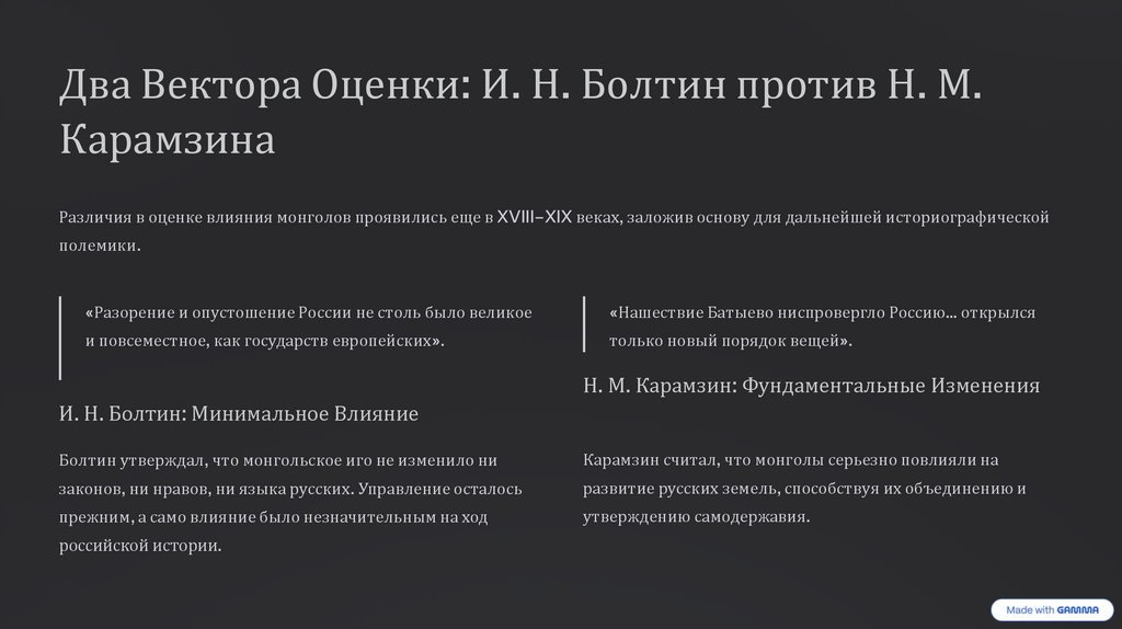 Различия в оценке влияния монголов проявились еще в XVIII–XIX веках, заложив основу для дальнейшей историографической