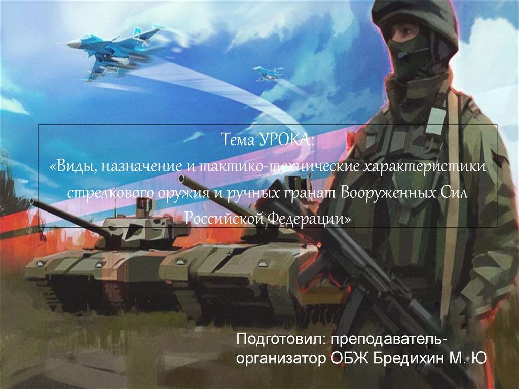 1. Тема УРОКА: «Виды, назначение и тактико-технические характеристики стрелкового оружия и ручных гранат Вооруженных Сил