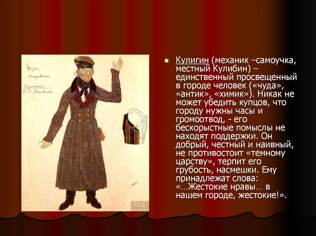 - природное явление – гроза становится фоном, на которомразворачивается финальная сцена пьесы. Разразившаяся гроза