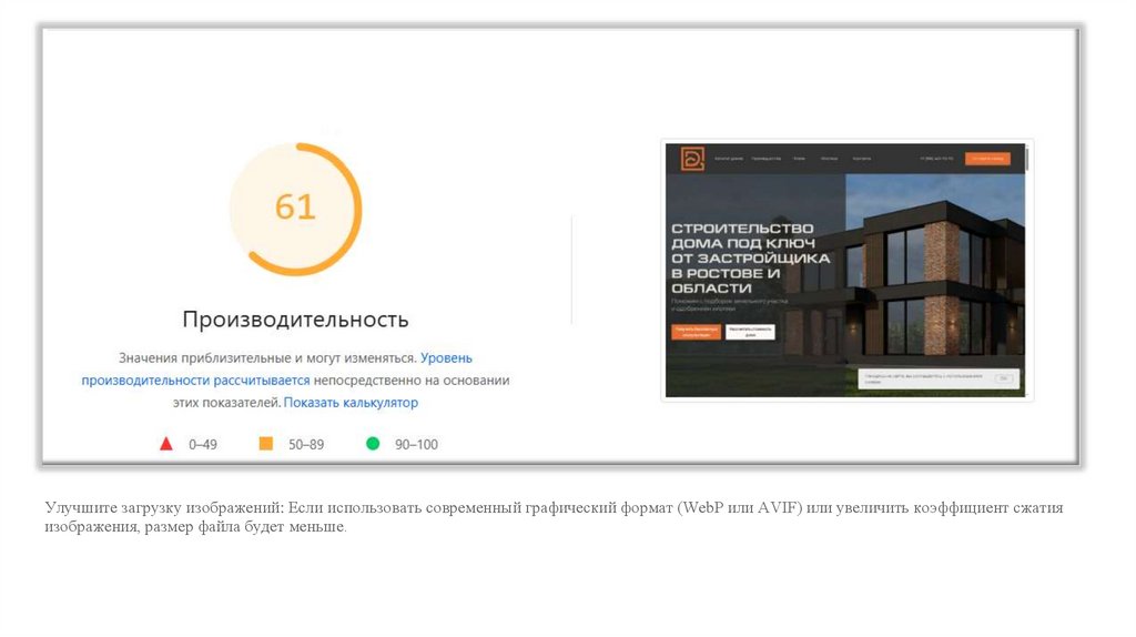Улучшите загрузку изображений: Если использовать современный графический формат (WebP или AVIF) или увеличить коэффициент сжатияизображения, размер файла будет меньше.