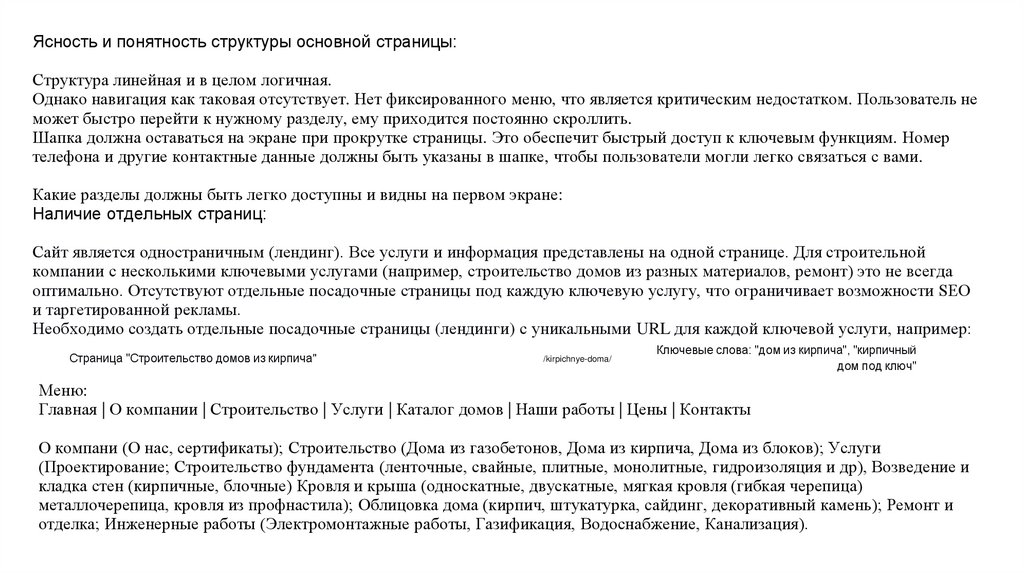 оптимально. Отсутствуют отдельные посадочные страницы под каждую ключевую услугу, что ограничивает возможности SEO