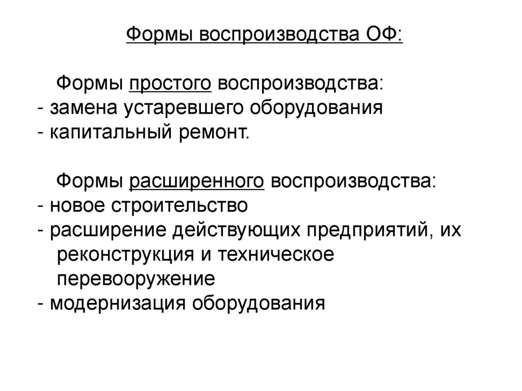 воспроизводства ОФ.
