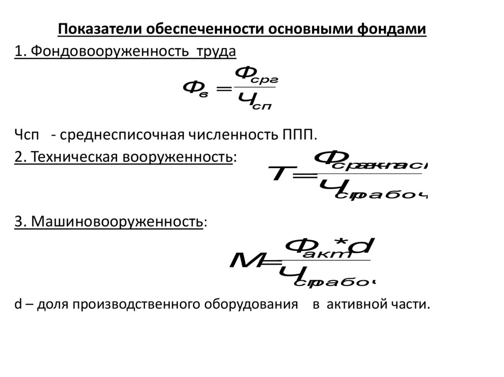 Показатели обеспеченности основными фондами1. Фондовооруженность труда