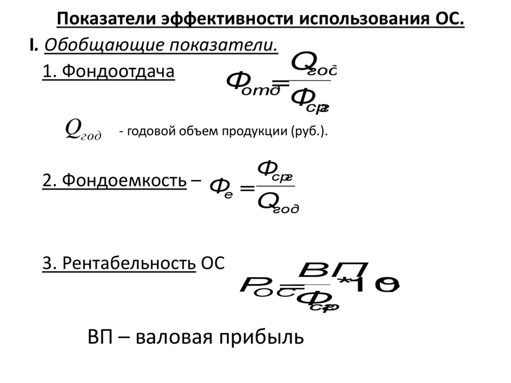 Показатели эффективности использования ОС.I. Обобщающие показатели.